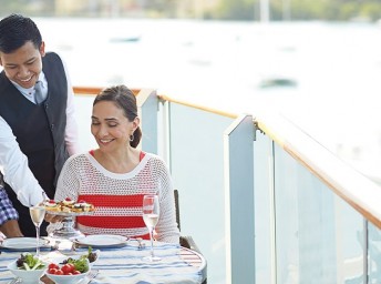 Stravovanie: V cene plavby je plná penzia. Raňajky, obedy a večere si môžete vychutnať v hlavnej reštaurácii, kde máte na výber od klasickej a vegetariánskej kuchyne až po špeciality v navštívenom regióne, prípadne špeciálne diétne požiadavky (ktoré však musia byť ohlásené vopred). Večera sa podáva o 17:45 alebo o 20:00 na dvoch podlažiach v hlavnej reštaurácii. Jedno podlažie je prispôsobené pre voľný vstup medzi 17:15 – 21:00. Pizzu, talianske šaláty alebo hamburger si môžete objednať aj v občerstveniach pri bazéne. K dispozícii je aj Lido (bufetová reštaurácia), kde si môžete vychutnať raňajky a obedy v ležérnom štýle s výhľadom na oceán.