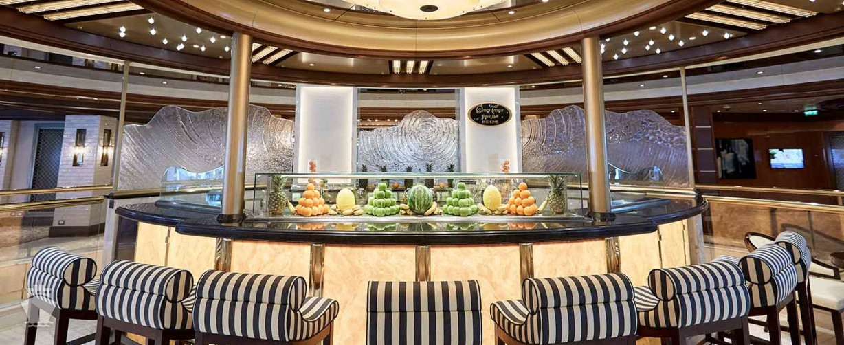 - Club Class Dining: Exkluzívna časť hlavnej reštaurácie vyhradená pre hostí Club Class and Full Suite, s urýchlenou obsluhou. Originálna štýlová dekorácia, príprava jedál priamo pri stole a ďalšie extra!